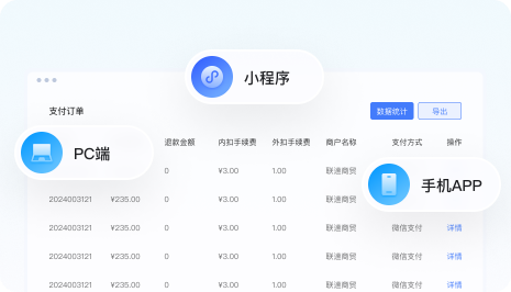 支持商户与用户通过PC端与小程序端手机APP等,随时随地查看交易流水